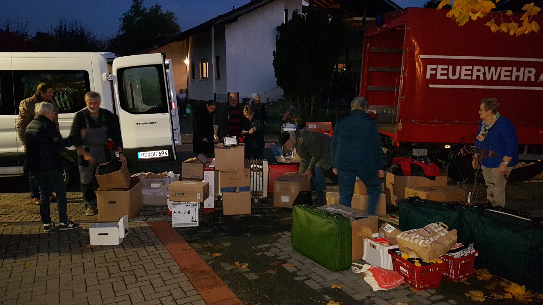 Winterkleidung, Heizlüfter, Elektrokleingeräte, Geschirr, Hygieneartikel, Geldscheine … und viele guten Wünsche. Liebe Menschen aus Frauenweiler und Wiesloch, wir waren schon etwas sprachlos wie viele unserem Spendenaufruf gefolgt sind. Vielen herzlichen Dank!!! Heute morgen wurde noch Baumaterial wie OSB-Platten von den Geldspenden eingekauft und nun sind einige Männer unterwegs ins Ahrtal, mit sage und schreibe einem 7,5 Tonner plus großem Hänger und 3 Sprintern. Danke!!!