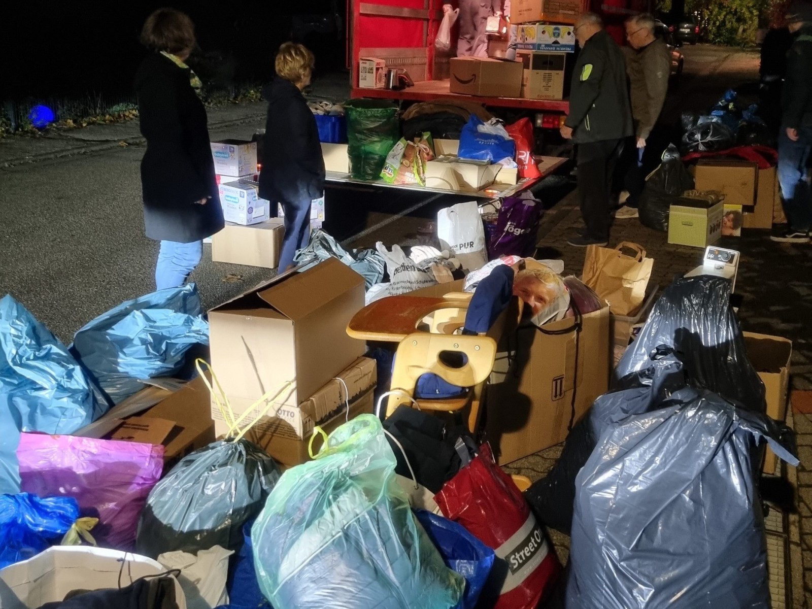 Aktuell ist die Hilfsgüterausgabe dort, obwohl es noch einen großen Bedarf gibt, vorübergehend geschlossen. Der Grund ist, dass der Eigentümer des Gebäudes zwar sehr froh ist, dass das Helferteam noch immer für die Betroffenen so fleißig und aktiv ist. Aber bevor man es nun weiter betreibt, will der Träger das Haus und die Statik prüfen. Im Moment ist leider noch nicht klar, wann die Hilfsgüterausgabe wieder geöffnet werden kann. Sie soll aber auf alle Fälle wieder geöffnet werden.